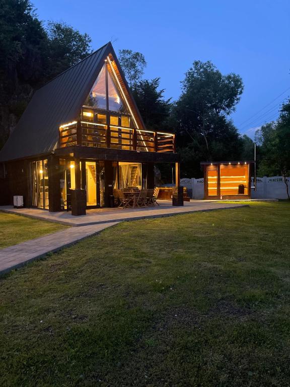 Fiecare cabană A Frame este amenajată cu mobilier contemporan și decoruri care se integrează perfect în peisajul natural, oferindu-ți totodată o atmosferă călduroasă și primitoare.